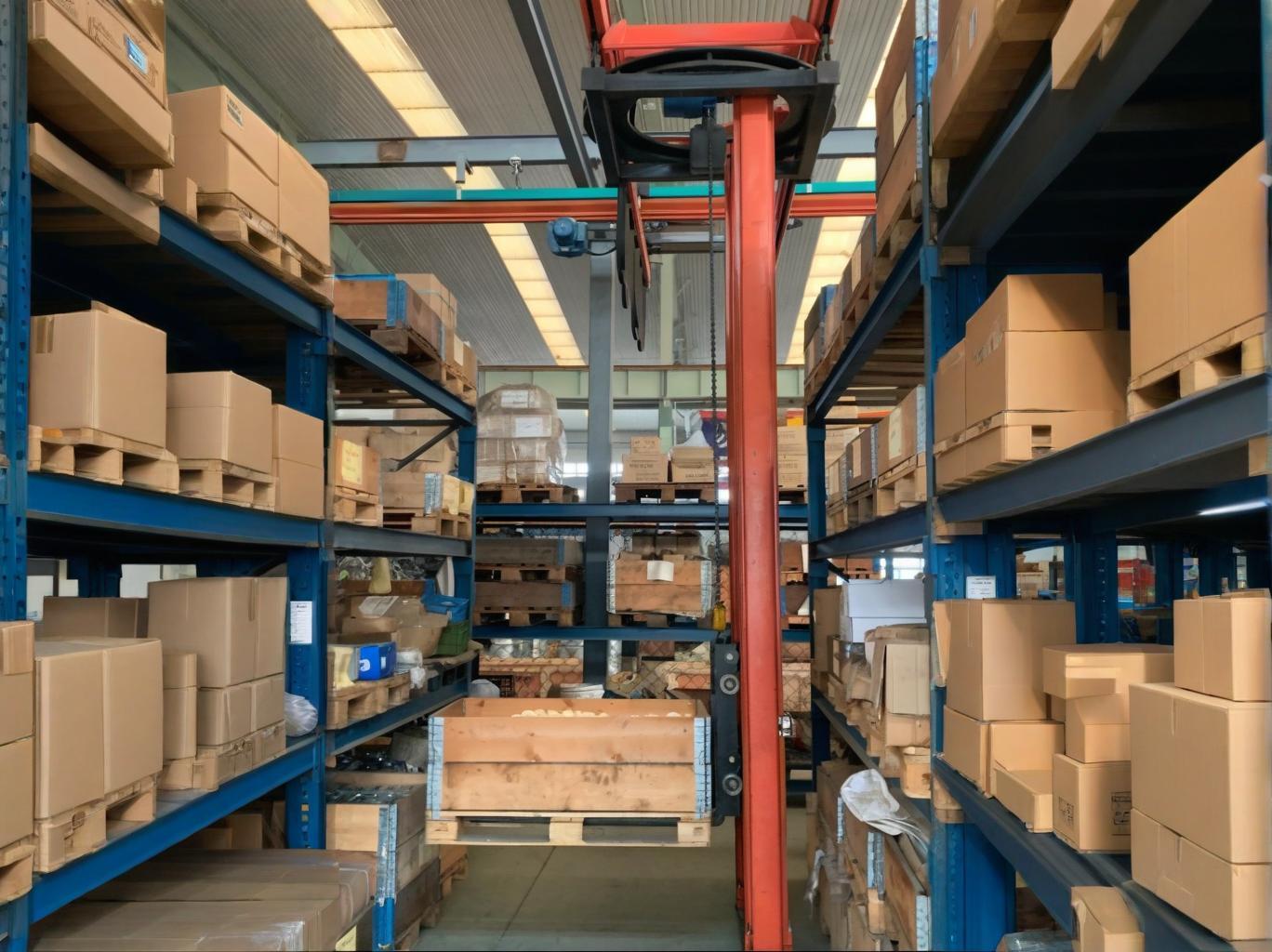 It is designed for material handling in high-rise and multi-row dense shelving warehouses in industries such as machinery, electronics, and light industry. The flexible suspended stacker is easy to operate and can efficiently complete warehouse material handling tasks without the need for specialized operators.